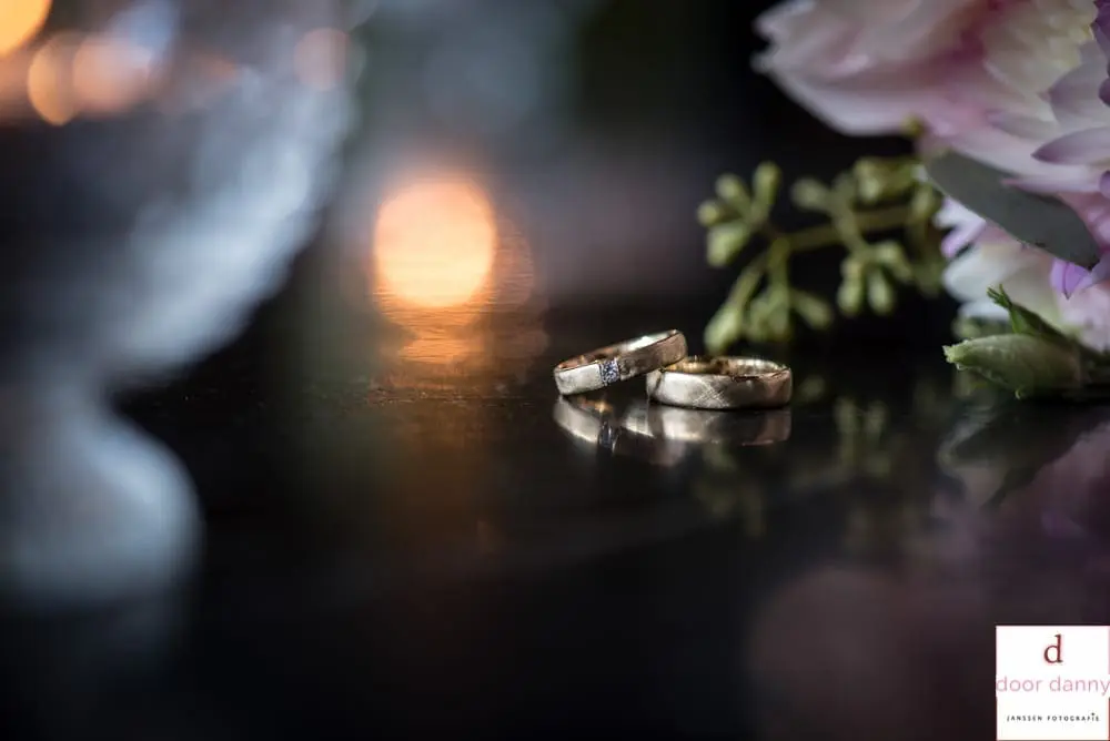 Om 19.30 uur doet Rianne haar ’trapmomentje’ nog eens over met haar papa die haar officieel weg zal geven. Het wordt een ceremonie met een lach en een traan, broer, zus en vrienden maken de ceremonie bijzonder door lieve woorden. Het is zo mooi en liefdevol, en als hoogtepunt het Ja-woord, met daaraan vooraf de prachtige Vows van het bruidspaar zelf.